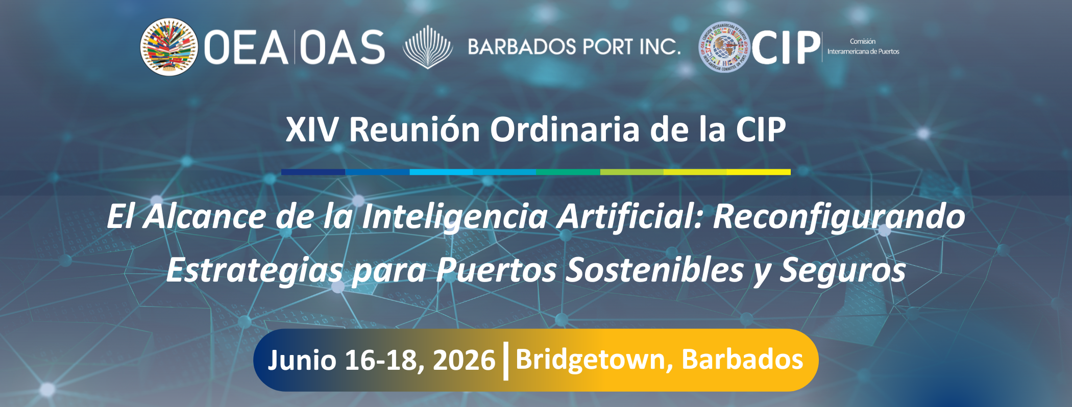 Conocer más Conocer más Conocer más Conocer más Leer más Leer más Leer más Leer más Leer más Leer más Conocer más Comisión Interamericana de Puertos Leer más Comités Técnicos Consultivos (CTC) Becas Calendario de Actividades ¡Unáse! Aprenda sobre cómo unirse a la CIP Comités Técnicos Consultivos (CTCs) Logística, Innovación y Competitividad Protección y Seguridad Portuaria Hidrovías, Puertos Interiores y de Cruceros Gestión Portuaria Sostenible y Protección Ambiental Políticas Públicas, Legislación y Regulación Relación Puerto-Ciudad, Responsabilidad Social y Equidad de Género 3,804 Becas Otorgadas Desde 2015 $6,740,770 Destinado a Becas Desde 2015 (USD) 34 Estados Miembros Beneficiados 80+ Miembros Asociados y Socios Estratégicos 82 Webinars Desde 2020 16,188 Personal Portuario Capacitado Desde 2020